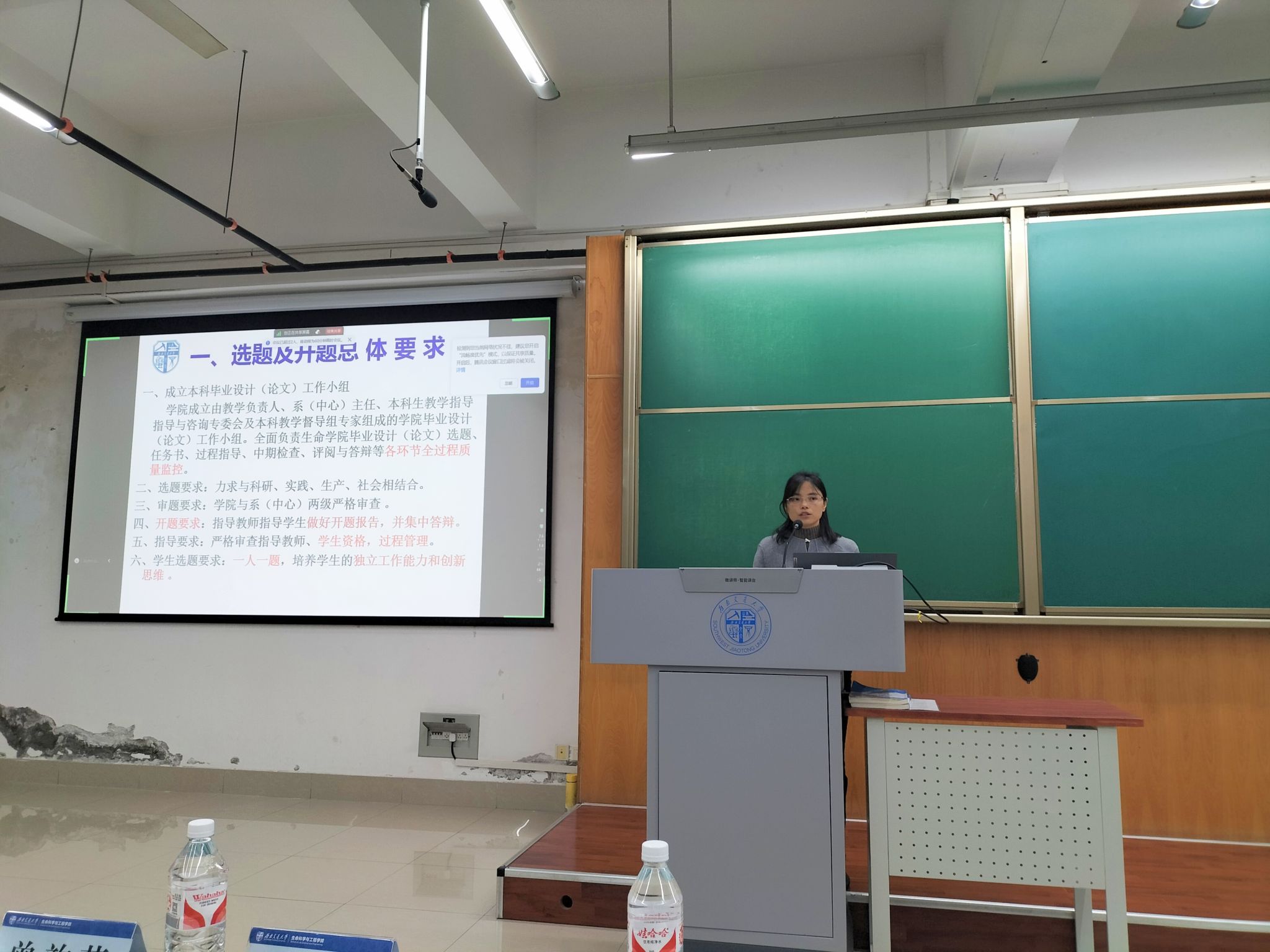 陈琳老师作毕业论文(设计)动员。她从毕业论文(设计)的总体要求、时间安排、注意事项、校外毕业设计(论文)工作要求等方面进行详细讲解,并就同学们的疑问进行解答。她强调了毕业论文的重要性,希望同学们高度重视,严格遵守学术诚信相关要求,按照公司毕业论文(设计)的相关文件要求和时间节点做好相关工作。