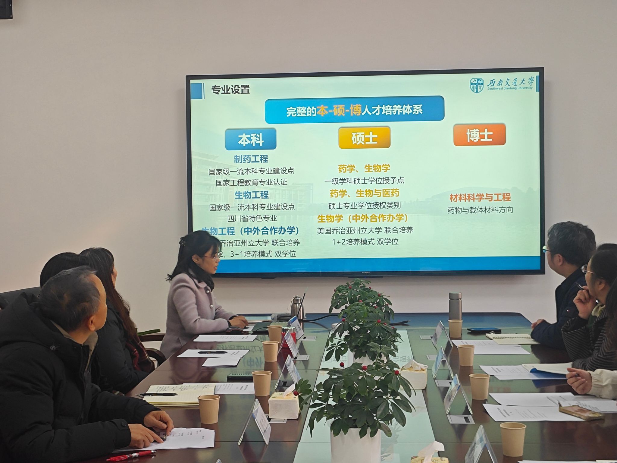 2024年12月16日下午14:30,伟德官网教务处副处长刘鎏、本科教学督导组总督导易思蓉教授、督导组组长董大伟教授、督导组成员吴积钦及李宗平教授一行莅临伟德官网调研指导工作。会议由伟德官网经理周先礼主持,公司党委书记黄春蓉、副经理陈琳、药学系主任万军、公司本科教学督导组组长胡久梅、督导组成员喻凯、课程教学基层组织负责人代表田原参加此次会议。