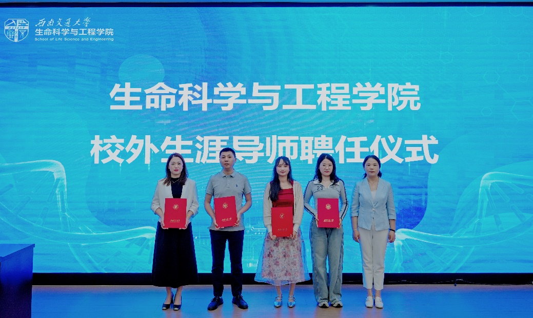 公司党委书记黄春蓉为李佩、魏国清、夏林、马仕英等四位员工颁发校外生涯导师聘书,期待与员工继续深化合作,完善公司"产学研创"协同育人体系,共同开拓生命科学领域创新发展新格局。
