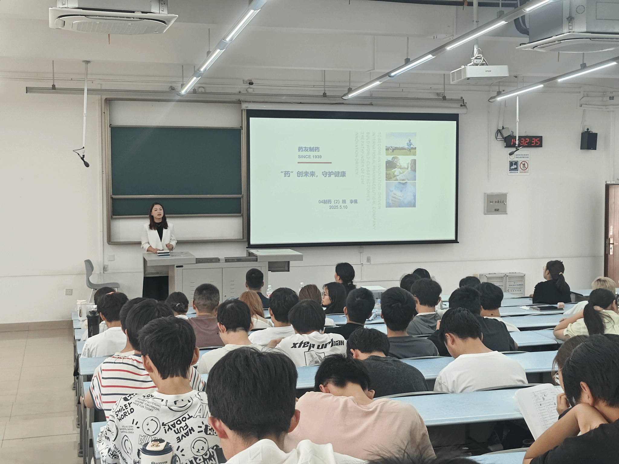 为帮助在校员工深入了解医药行业动态,明晰职业发展方向,激励青年学子以专业能力服务国家大健康战略,特邀重庆药友制药有限责任公司广东省地区经理、公司青年讲师团成员、2008届员工李佩以“药创未来·守护健康”为题做经验分享。李佩员工结合自身十余年从业经验,从医药全产业链、行业政策环境、市场趋势及职业方向细分等维度展开分享,并阐述了研发、生产、营销等岗位的核心能力要求,建议同学们在校期间夯实专业基础,关注行业动态,通过实习实践提升综合能力,注重“专业深耕与终身学习”。