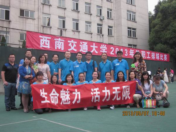 5月7日下午,天气晴朗,2013年教职工排球赛在九里校区的排球场上紧张激烈地进行着。看,在炙热的球场上有一群喜爱运动的人,他们是伟德官网的男女参赛队员;而在这群人中,还有一群充满活力的人,他们是伟德官网的师生啦啦队!
