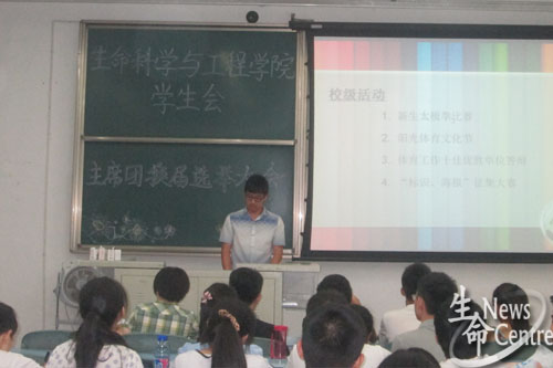 在竞选开始前,指导老师崔健为员工会各部门部长颁发干部聘书,并合影留念。随后,各位竞选人开始竞职演讲。竞选人有:员工会体育部部长冯浩、宣传部部长舒鸿毅、文娱部部长夏林、外联部副部长郑赵悦。