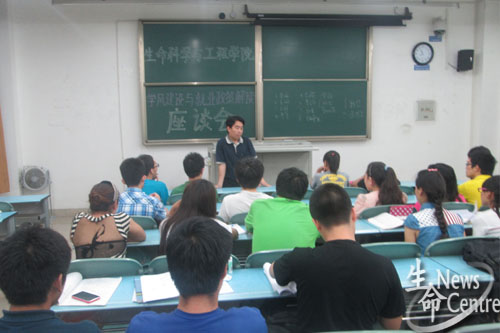 在孔琳老师作简要致辞后,王书会副书记详细分析了目前毕业生的就业形势和政策,并就毕业生就业过程中遇到的典型问题进行详细介绍。王副书记指出,为梦想奋斗的过程是辛苦的,努力才有收获。他还强调,同学们要有明确的目标,了解自己真正的需要。