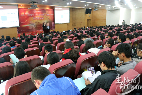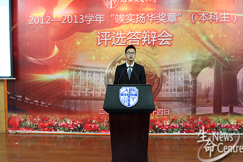 下午14:00,大会正式开始。主持人介绍了评委、评选标准和评分规则之后候选人依次进行五分钟答辩。伟德官网生物信息学专业2010级徐博亦发表了精彩演讲。