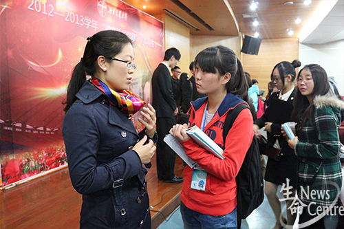 11月14日,2012--2013学年“竢实扬华奖章”(本科生)评选答辩会于图书馆一号报告厅顺利举行。公司党委副书记朱健梅、副董事长冯晓云、教务处、人才招聘处、实验室及设备管理处、员工工作处、国际合作与交流处、校团委等部门的领导,以及各公司(中心)员工工作负责人、教师代表和本科生代表参加评选答辩会并担任评委。公司党委副书记罗妍妍、经理助理李遂焰作为公司员工工作负责人和教师代表参加了此次答辩会。另外,来自各公司(中心、所)低年级同学到场观摩。