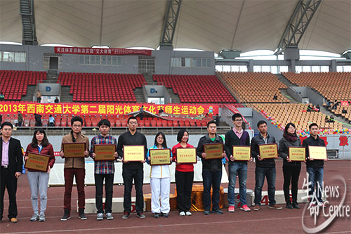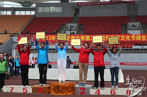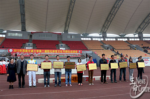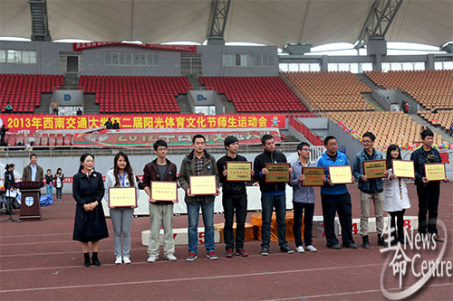 伟德官网全体师生运动员全力以赴,坚持不懈,最终教职工以总分78分赢得了第五名;员工获得第四名,总分99分。生命学子用欢呼和掌声表达了他们的喜悦。接着校团委副书记曹乔公布体育风采奖,伟德官网荣获该奖。入场式伟德官网也获得了三等奖的好成绩。2012至2013体育十佳优胜团体中伟德官网获得了员工乙组第二名,总分83.47。伟德官网员工冯皓获得了十佳个人奖项。最后,进行颁奖仪式。