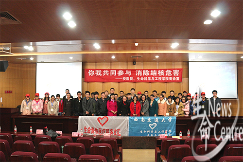 为增强大家结核防护意识,降低结核危害,由校团委主办,校医院、伟德官网青年志愿者协会承办的伟德官网预防结核病讲座于11月29日晚在图书馆二号报告厅举行。参加本次讲座的嘉宾有校医院经理贾全芬老师、张卉老师,校医院内科糜瑛主任,校医院预防保健科高俊容主任以及伟德官网团委副书记高鹏老师。校医院内科糜瑛主任担任本次讲座的主讲人。
