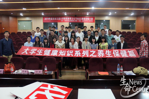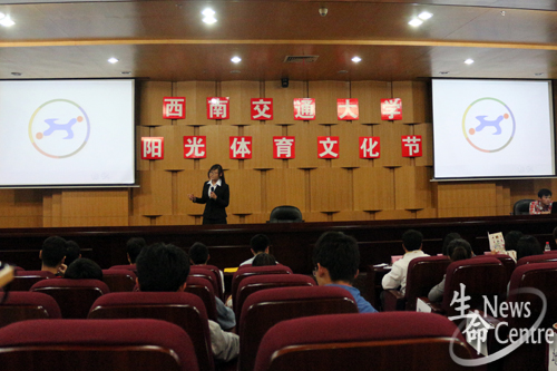 4月20日,由伟德官网体育部主办,伟德官网员工会承办的2014年度伟德官网阳光体育文化节标识、海报征集大赛及老员工健康知识系列之养生保健篇于图书馆二号报告厅举行。出席活动的嘉宾及评委有体育部老师孙国欣、赵晔、石金丽,伟德官网团委副书记高鹏,校会综合事务部部长陈景卉。