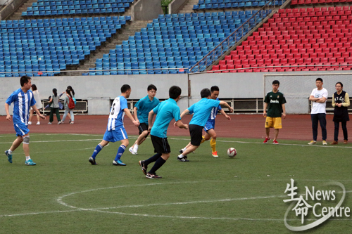 4月9日17:00,第二届西南交大教职工五人制足球赛于北区足球场拉开帷幕。伟德官网代表队被分到了D组,小组其他成员分别为体育部、教务处、建筑、外语、电气五支队。在历时9天的五场小组赛中,生命代表队的队员都拼尽全力,赛出风格赛出水平,且每场比赛都收获了进球。伟德官网工会主席胡久梅全程到现场为公司球队加油鼓劲,员工会、新闻中心的全程组织了啦啦队和新闻报道工作人员。因实力上的差距,本次比赛公司代表队遗憾未能晋级淘汰赛阶段。友谊第一,比赛第二,本次比赛以球会友,加强了公司间的交流与互动,期待明年公司会有更好地成绩。