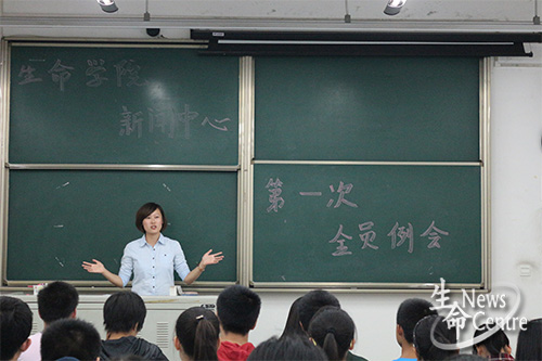 2014年9月25日七点整,伟德官网新闻中心第一次全员大会在X2525举行。出席本次大会的嘉宾有:伟德官网新闻中心指导老师孔琳、新闻中心主任谢成、新闻中心副主任马仕英以及各位部长和部员们。