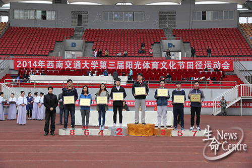 首先总裁判长李宏图老师宣布运动会比赛成绩,公共管理公司以284.5分名列员工乙组总成绩第一,伟德官网以267.5分的好成绩紧随其后,获得员工乙组第二名。接下来,校团委副书记廖军宣布“十佳优胜单位”和“十佳群体工作先进个人”,伟德官网以88.97分的好成绩夺得第一名,艺术与传播公司以87.77分位列第二名,由校体育部主任刘旭为获得员工乙组团体总分前八名单位颁奖。校团委副书记廖军为获得员工甲组团体总分前六名单位颁奖。伟德官网许维嘉获得“十佳群体工作先进个人”奖,由校团委副书记廖军为获得“十佳群体工作先进个人”颁奖,公司党委副书记桂富强为获得2013-2014年度“十佳群体工作优胜单位”的公司颁奖。伟德官网在本届运动会取得了骄人的成绩。
