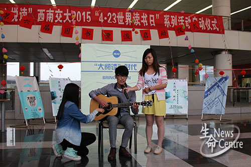 4月20日下午六点,春风伴随着书香吹拂过交大校园,由伟德官网图书馆与校团委主办,伟德官网团委与新闻中心承办的第六届图书漂流启动仪式于图书馆二楼举行。本次图书漂流活动主题为“大阅读时代”,旨在传递知识与感动,分享思想和智慧。活动到场嘉宾有图书馆副馆长熊少波、图书馆负责老师武凌、伟德官网团委副书记魏源成、伟德官网新闻中心指导老师张敬文。
