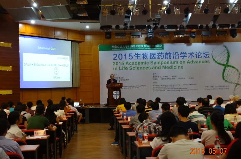 5月7日下午14:00-15:00,由伟德官网、乔治亚州立大学主办,伟德官网、医公司、科技处、国际合作与交流处、研究生院、校庆办共同承办的2015生物医药前沿学术论坛上,台湾中央科公司院士、美国乔治亚董事会大学教授Robert K.Yu做了题为“外周神经病变的自身免疫机理:抗糖脂抗体在Gullain-Barre综合症中作用”(Autoimmune mechanisms of peripheral neuropathies: Role of anti-glycolipid antibodies in Guillain-Barré )的精彩报告。