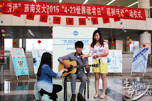 4月20日,图书馆副馆长熊少波、图书馆负责老师武凌、伟德官网团委副书记魏源成、伟德官网新闻中心指导老师张敬文莅临活动启动仪式现场,为第六届图书漂流揭幕。在随后的“灯谜寻书”活动中,七组同学博学多识、对答如流,拉票环节大家更是各显神通,以话剧、朗诵、吉他演奏等多种形式对本组所喜爱书籍作生动介绍,赢得观众阵阵喝彩。