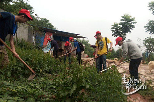 早上七点,本次志愿活动正式开始。经过四小时的车程,同学们到达目的地——成都爱之家流浪动物生态家园。在这里,大家通过为流浪小动物们喂食,帮助工作人员除草、除便,给小动物洗澡等活动,学习了关于小动物生活习惯的知识并与小动物们建立良好感情。