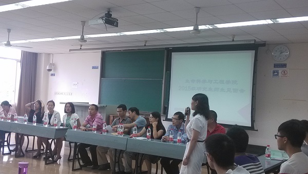 2015年8月28日上午,2015级研究生师生见面会在逸夫楼4407B教室举行。本次师生见面会由研究生辅导员贺妍老师主持,采用圆桌会议的形式,公司党委李卓慧书记、公司经理周先礼教授、公司党委罗妍妍副书记、公司副经理马超英教授、李遂焰副教授、经理助理袁艺副教授、生物工程系主任喻凯教授、药学系主任闫智勇教授及部分研究生导师与全体新生进行了面对面交流,整个会议显得既庄重团结、又轻松活泼。。