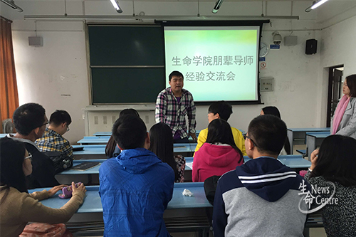 紧接着,便由14级的朋辈导师们分享他们的经验与收获,其中包括他们为新生所做的、他们在新生身上所学到的以及所带班级的变化等方面。15级朋辈导师们也抓住此次机会就自己的疑惑和迷茫积极向老师、学长学姐们请教。