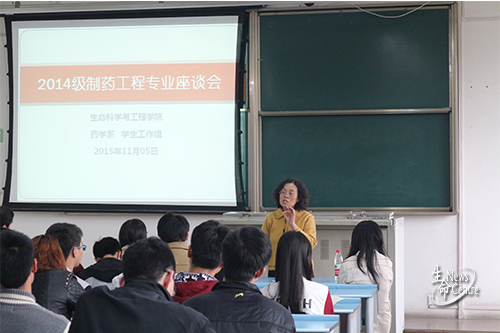 会议开始,闫智勇教授就制药工程专业方向,就业方向,培养计划等方面给2014级制药专业的同学们进行了详细地介绍。制药工程专业方向分为化学制药和中药制药,本科专业毕业生就业率稳居全国本科毕业生就业榜前茅。