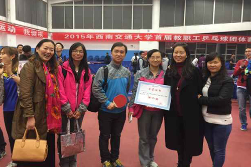 11月12日,伟德官网首届教职工乒乓球团体赛决赛在犀浦校区乒乓球馆拉开帷幕。出席此次比赛的嘉宾有:校工会主席罗乾超、校工会副主席郑江、校体育部主任刘旭、乒协名誉会长应松宝经理、乒协会长杜力平教授,以及到会的各部门领导。