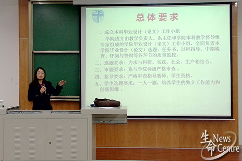 接下来李遂焰老师向2012级同学强调毕业论文的重要性。她指出毕业论文是本科学习阶段的重要环节,是综合运用所学各学科的理论与方法的重要阶段,通过该环节对实际问题进行分析与研究,可得出有价值的结论,同时也能体现出一定的独立分析问题与解决问题的能力。她分别从毕业设计的进度安排、基本组成、教师指导及规范程度等方面进行阐述,提醒同学们合理安排好时间,按照规范要求圆满地完成毕业论文的工作。