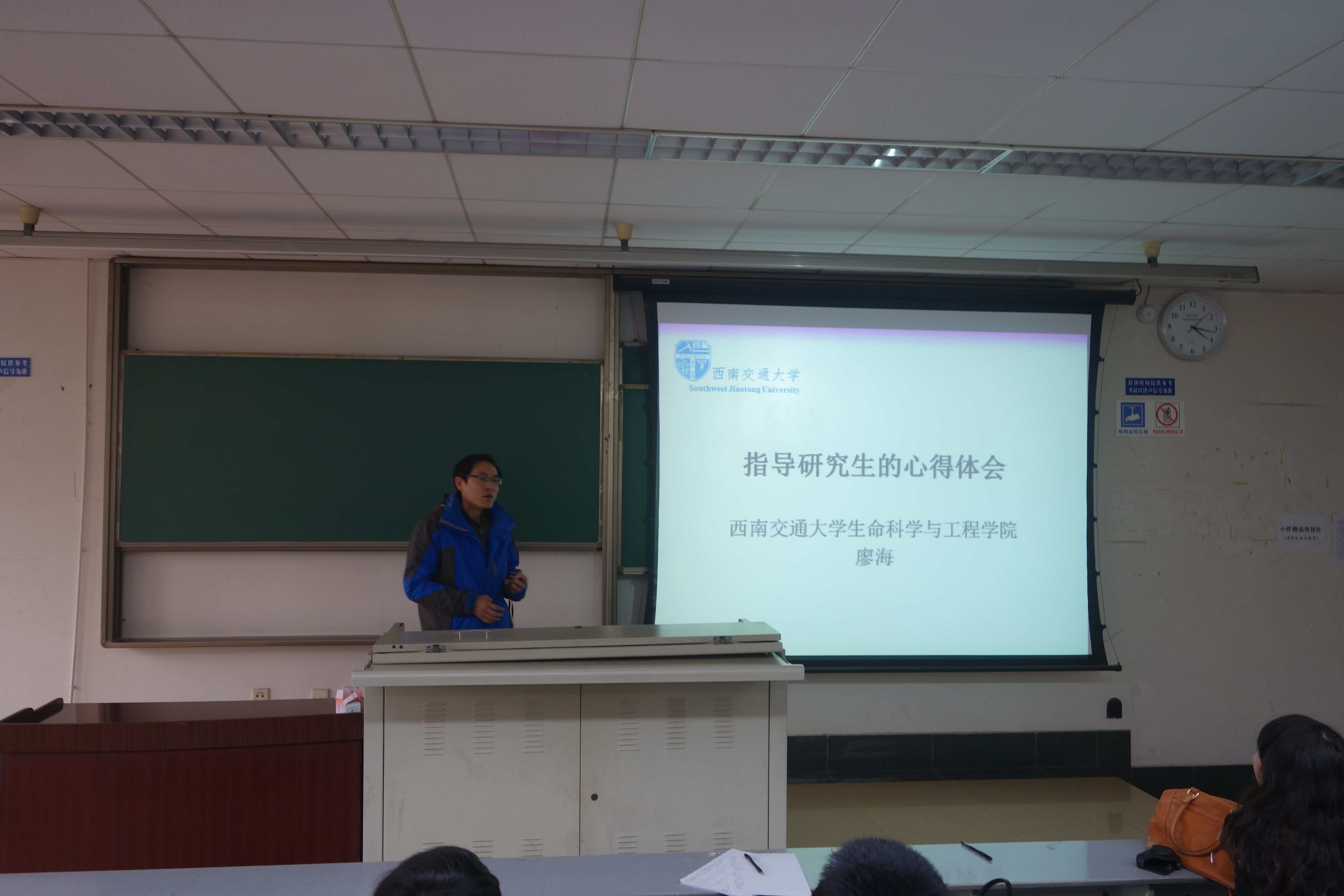 2015年12月27日下午2点 伟德官网研究生学术报告会暨导师交流会于逸夫馆4210教室举行。此次研究生学术报告会暨导师交流会旨在为提升研究生的学术素养,营造一个良好的科技文化氛围,加强研究生之间的学术交流。交流会邀请到伟德官网孟涛,廖海,郭志云,周嘉裕,黄新河、王萃娟,王枢,黄帅,侯宗瑞等青年导师。交流会由经理助理袁艺主持,全体研究生参与。