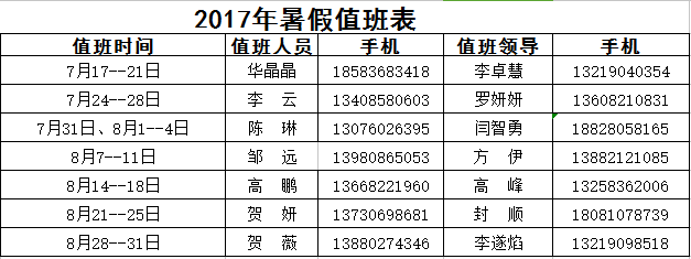 暑假期间,伟德官网办公室盖章时间:周一下午15:00-17:00,地点:九里校区电气馆3605,电话:87603202。盖章前需提前一天与值班老师预约,请相互转告。