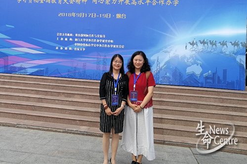 全国第九届中外合作办学年会于2018年9月17日至19日在山东烟台鲁东大学隆重举行。出席本届年会的有:教育部国际司副司长方军,山东省教育厅副厅长白皓,烟台市政府党组成员、副市长赵峰,中国高等教育学会副会长兼秘书长康凯,教育部学位中心副主任林梦泉,教育部国际司办学处处长聂瑞麟、副处长王义一行4人,以及教育部留学服务中心相关部门负责人等。公司副经理李遂焰、本科生辅导员孔琳参加了本次大会。本次大会遴选出的700多位代表来自全国27个省、自治区、直辖市,具有广泛代表性。大会主席、厦门大学中外合作办学研究中心主任、中国高等教育学会中外合作办学研究分会理事长林金辉主持年会开幕式,并在闭幕式上致辞。