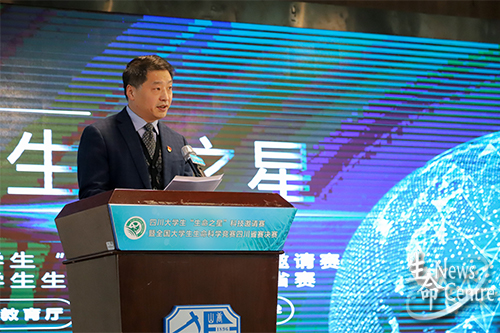 在四川省老员工“生命之星”科技邀请赛五周年宣传片播放后,西南交通老员工命科学与工程公司党委书记葛永明做赛事介绍。他表示,在四川省教育厅和公司党政的大力支持下,在省内各兄弟院校的积极配合下,历经五年的四川省老员工“生命之星”科技邀请赛”成功申报为“全国老员工生命科学竞赛”四川省赛,为省内老员工提供了更广阔的平台与空间。“生命之星”赛事将不断提高竞赛参与度,严格制度,创新形式,增强竞赛科学性,提升办赛水平。葛永明结合习近平总书记“十九大”报告提出的“青年一代有理想、有本领、有担当,国家就有前途,民族就有希望”鼓励同学们,希望大家通过竞赛增强创新意识,珍惜平台机会。