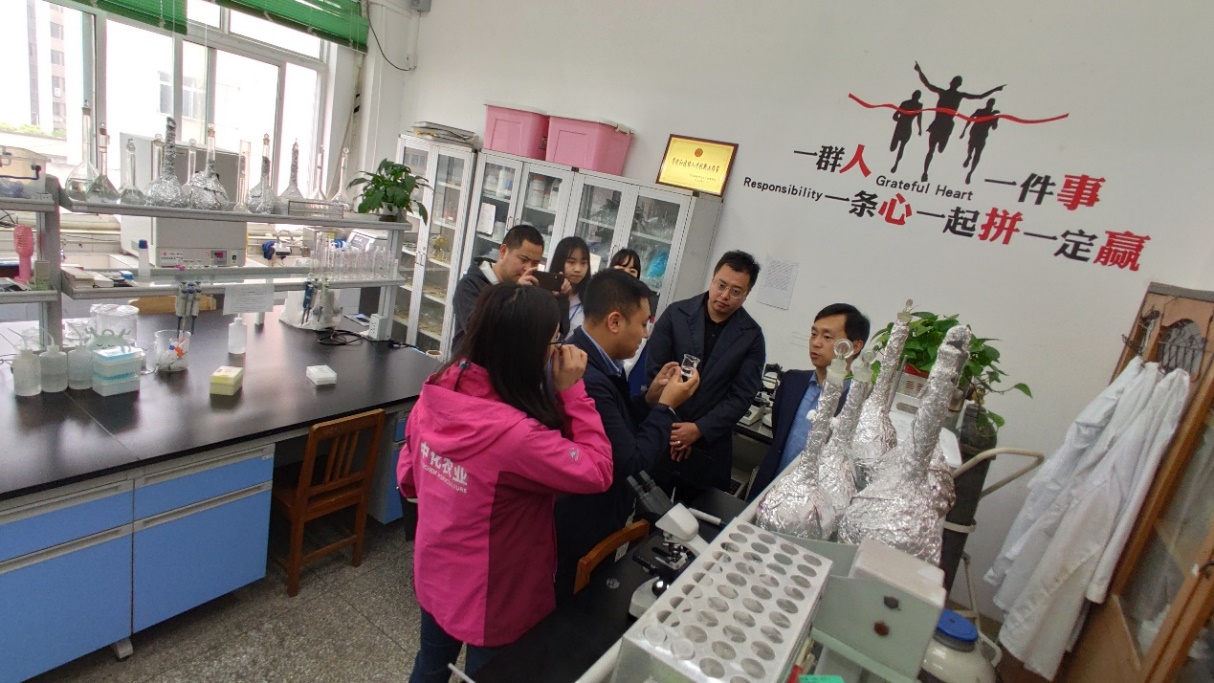 王文彬总经理一行参观了伟德官网微纳生物技术实验室,对实验室近期取得的科研成果非常感兴趣,对校企合作的前景和科研成果的推广应用充满信心。