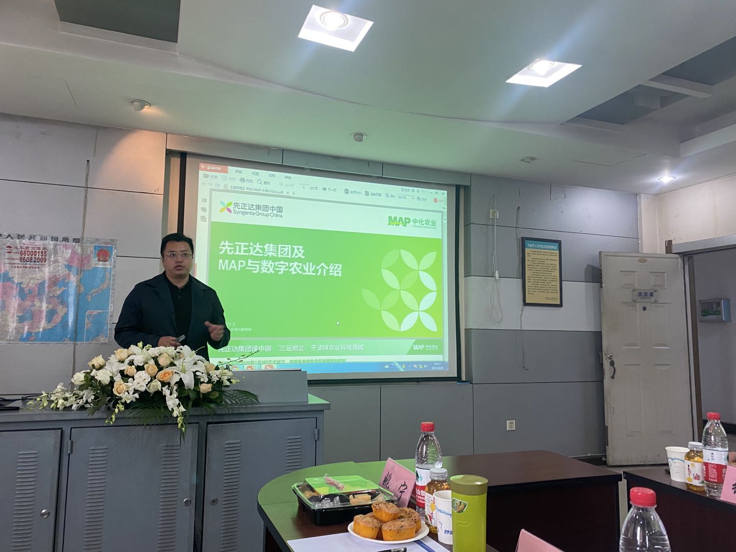王文彬总经理介绍了央企中化现代农业有限公司的业务范围、公司发展历程、MAP理念(Modern Agriculture Platform,即现代农业技术服务平台)、人才结构与需求和研发产业基地等,引起了大家的浓厚兴趣。在充分肯定公司办学概况、专业建设和科研成果等的基础上,非常愿意通过积极的校企合作,加强技术转化,共同孵化能推进我国农业农村高质量发展的科技创新创业项目,实现公司技术研发转化、企业人才战略储备和产教融合等多方共赢。