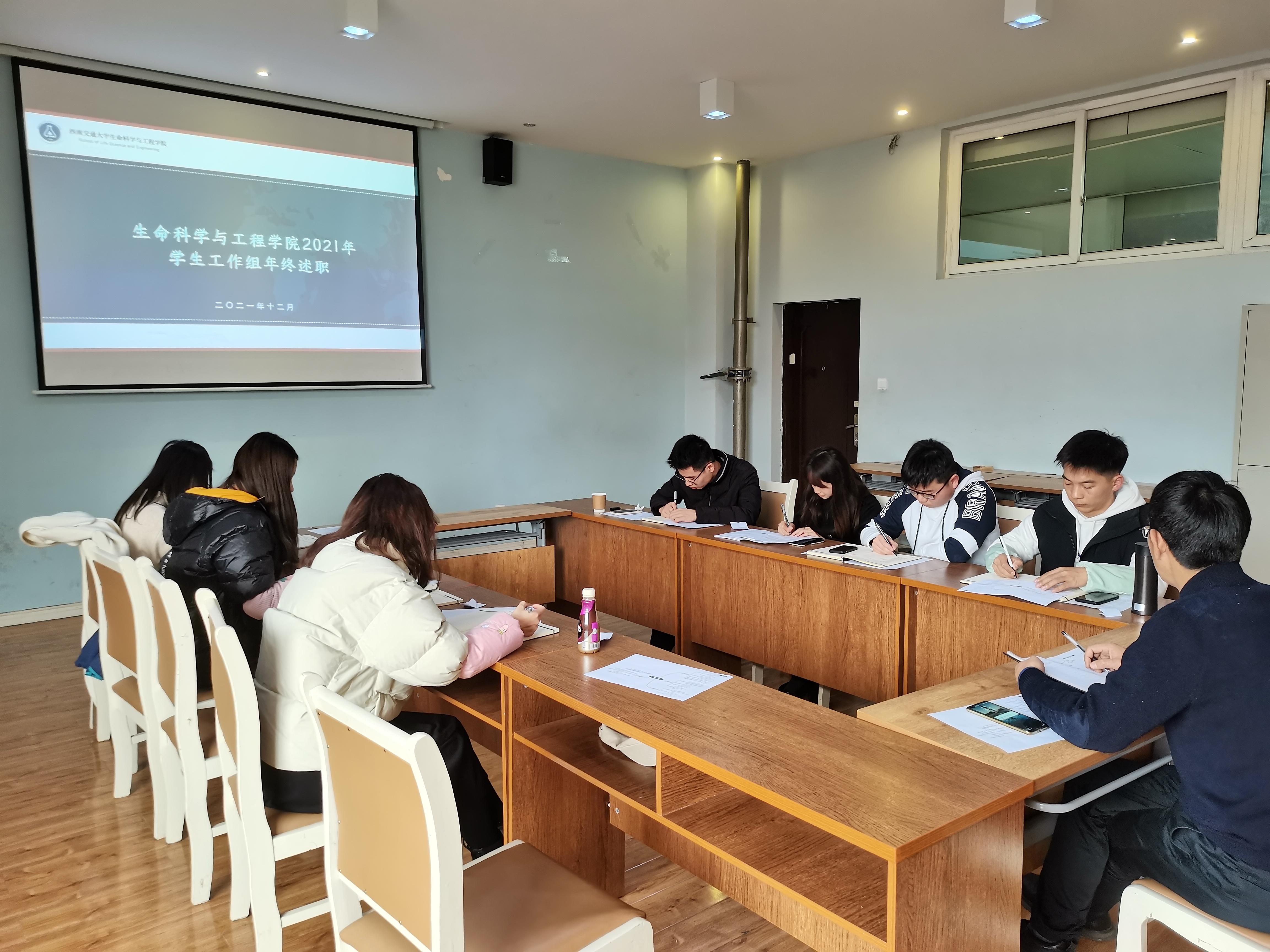 学工组副组长高鹏用“有思考”、“有亮点”总结自己2021年度的工作优点,指出新的一年要围绕“守正创新”,提前制定员工工作计划,创新员工工作形式,打造品牌育人活动,重凝练,勤思考,推动员工工作迈上新的台阶。兼职辅导员龙臻围绕“全员 全方位 全过程”的三全育人理念总结了自己的就业工作亮点,为在场辅导员介绍了宝贵的经验。兼职辅导员黄斌翰以“规范 丰富”两个关键词概述自己的员工工作,总结了研究生新生入学教育成果及研究生会和研究生党建成果。每位辅导员都认真思考,在总结中找差距,明方向,强信心,立志为培养德智体美劳全面发展的社会主义建设者和接班人贡献生命学工的力量。