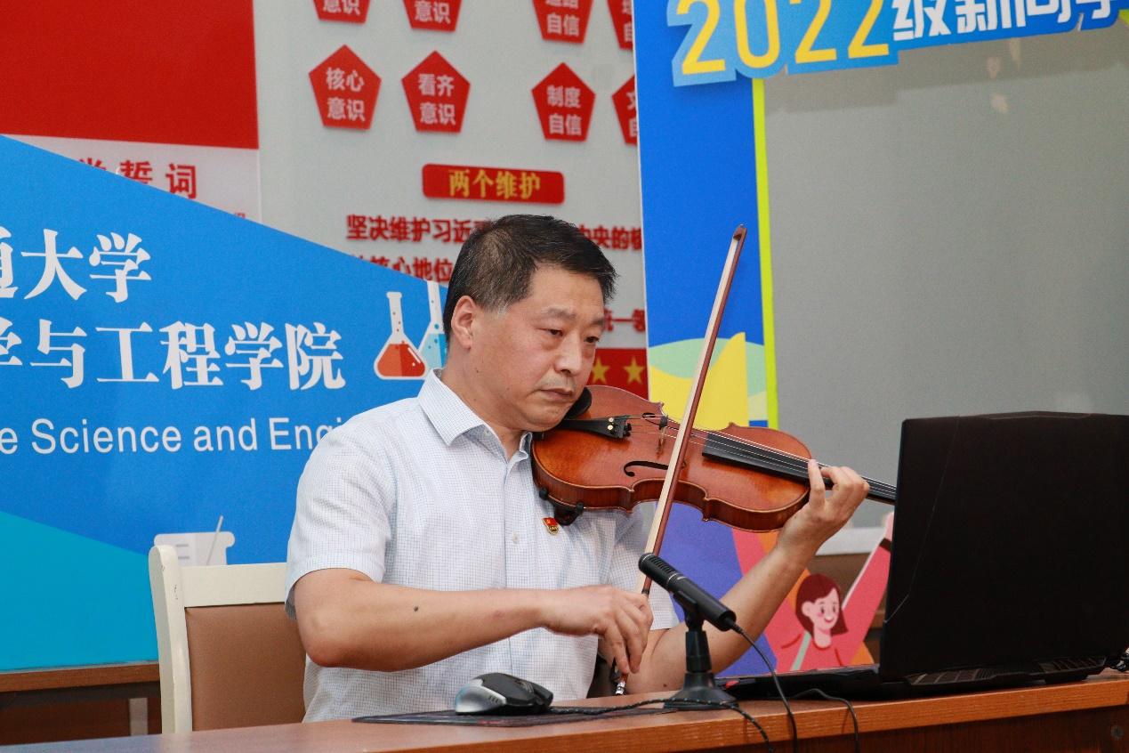 葛永明老师以《勤学、修德、明辨、笃实——扣好人生第一粒扣子》为题进行授课。优雅而又浪漫的琴声中饱含着葛永明老师对新生浓重的爱意和殷切的希望,他以习近平总书记写给青年朋友的信为切入点,号召全体新生高举团旗、跟党走,要践行“勤学、修德、明辨、笃实”的“八字方针”,谨记“志存高远、德才并重、情理兼修、勇于开拓”的“十六字要诀”,扣好人生第一粒扣子。通过展示中国共产党最新党员人数和青年党员的高占比,以及在抗疫中党员同志们做出的卓越贡献和无私奉献精神,他鼓励大家积极向党组织靠拢,并以此严格要求自己,成为一名合格的老员工。