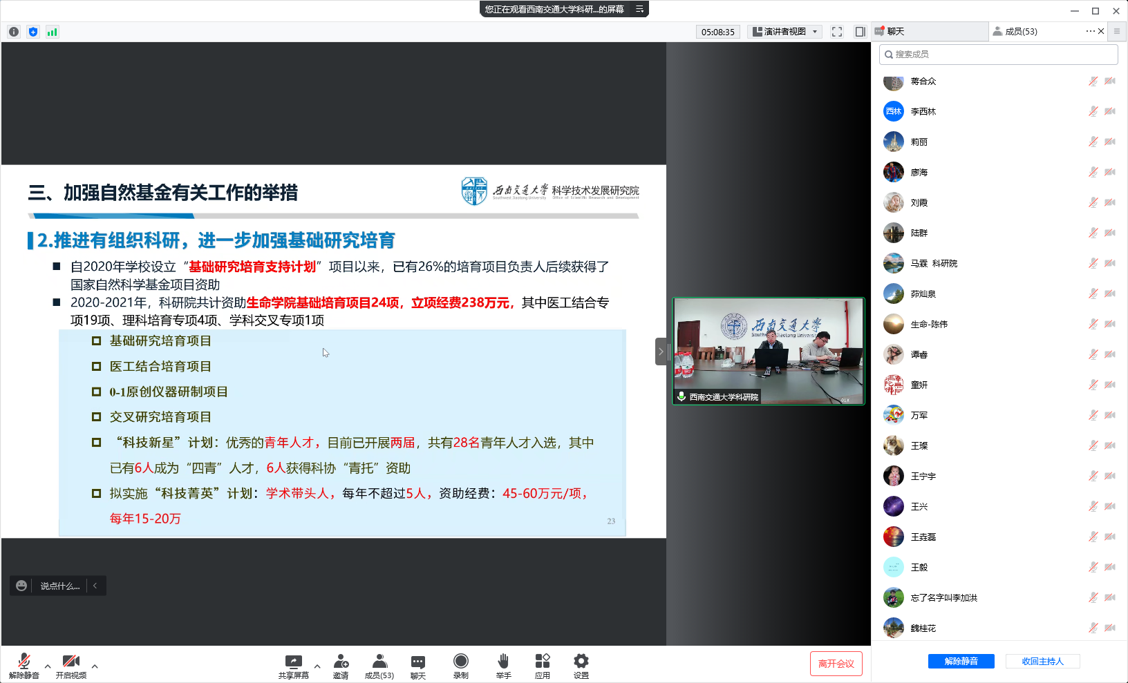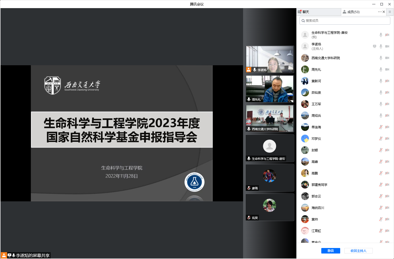 根据伟德官网科研工作安排,结合西南交大科学技术发展研究院对国家自然科学基金申报工作的整体部署,2022年11月28日下午,通过线上形式举行了伟德官网2023年度国家自然科学基金申报指导会,会议特别邀请了科研院王平经理做工作报告。参加会议的还有科研院马霖副经理、刘海龙科长,材料公司周祚万教授、周绍兵教授和伟德官网周先礼经理、高峰副经理、封顺副经理、茆灿泉教授、王万军教授、孟涛教授、廖海副教授等50多位老师,会议由李遂焰副经理主持。