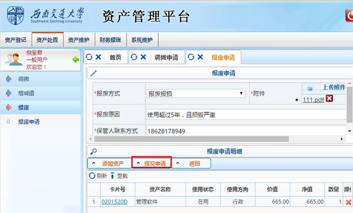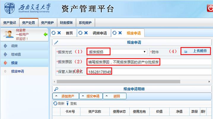 (3)保管人联系方式:填写手机号码(4)附件:上传待报废资产照片及特殊情况说明的书面材料