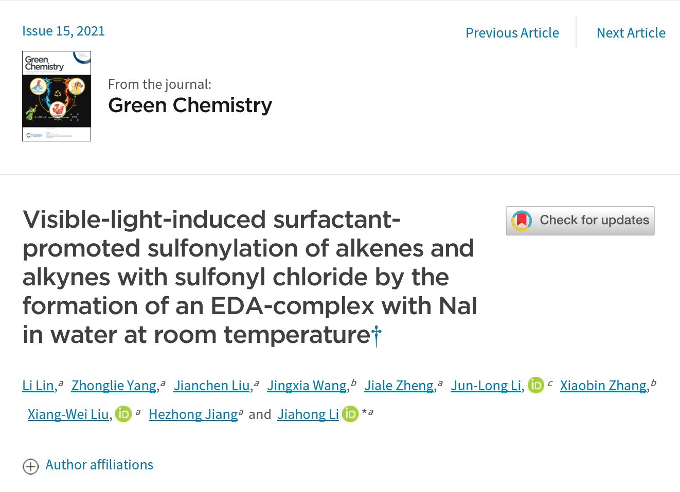 化学顶级期刊Green Chemistry发表公司李加洪博士团队最新研究成果