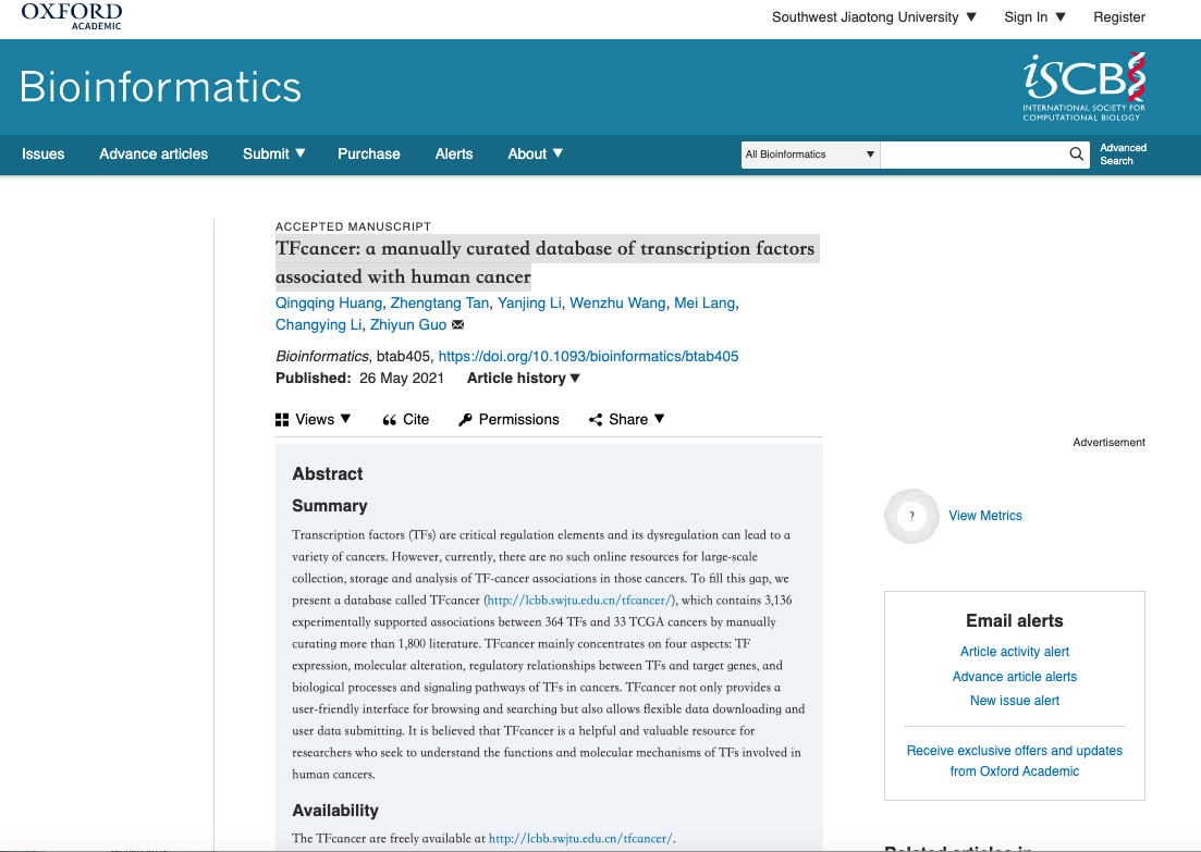 公司伟德官网郭志云课题组在生物信息学顶级期刊《Bioinformatics》上发表高水平论文