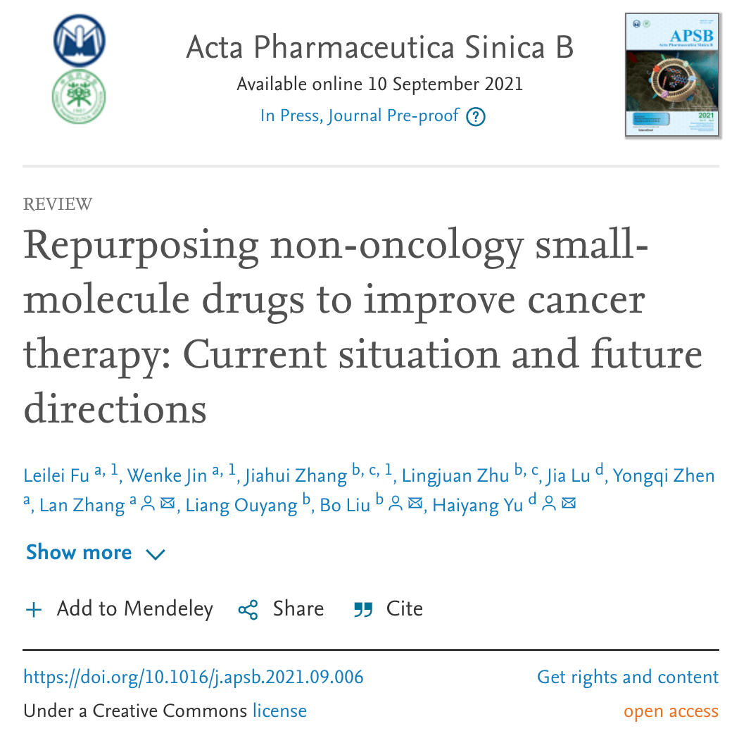 公司符雷蕾副教授和张岚副教授在药学Top期刊APSB发表综述