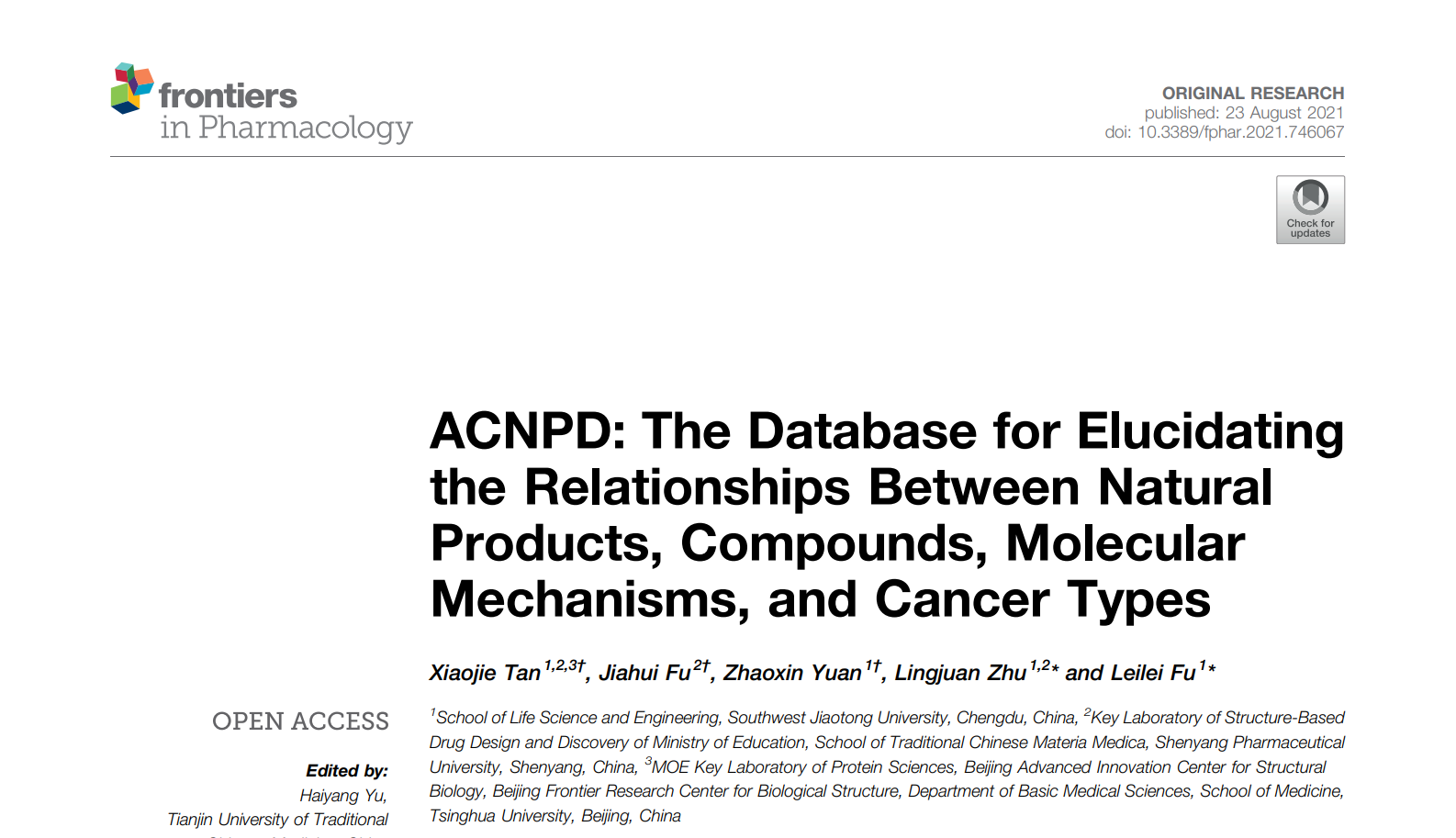公司符雷蕾团队构建抗肿瘤天然产物数据库ACNPD