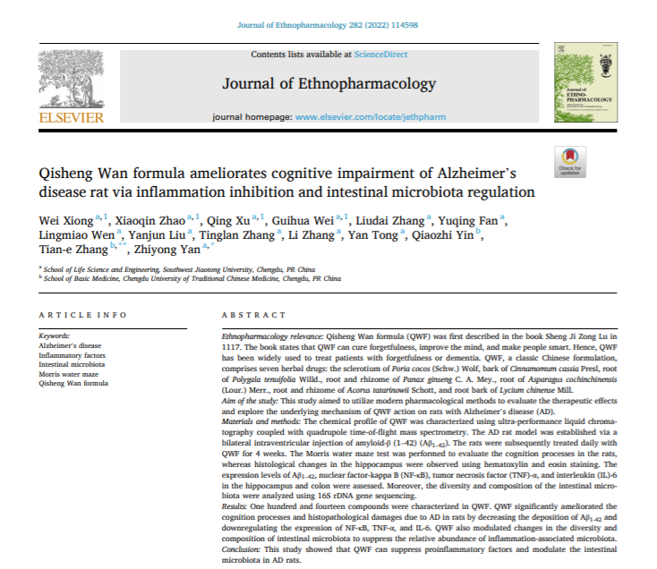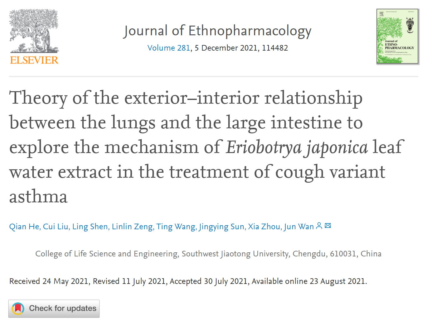 公司闫智勇教授课题组在中药药理学权威期刊《JOURNAL OF ETHNOPHARMACOLOGY》上发表高水平论文