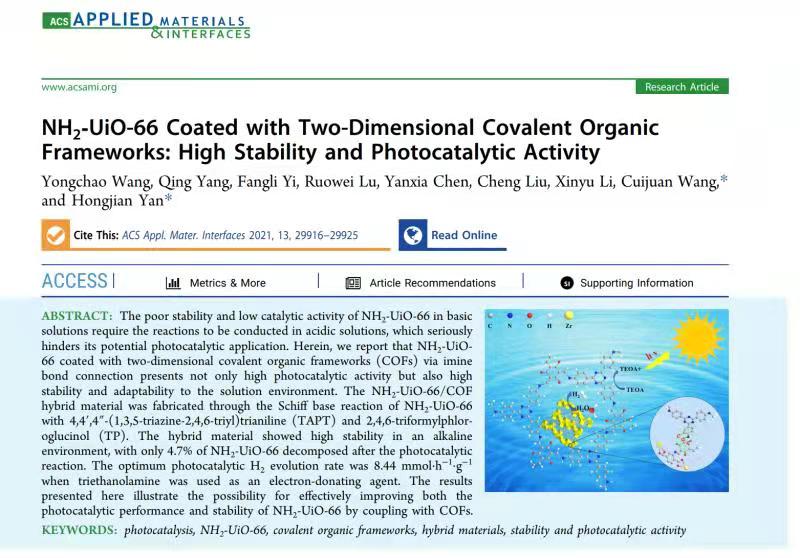 公司王萃娟老师课题组在材料领域TOP期刊《ACS Applied Materials & Interfaces》上发表最新成果