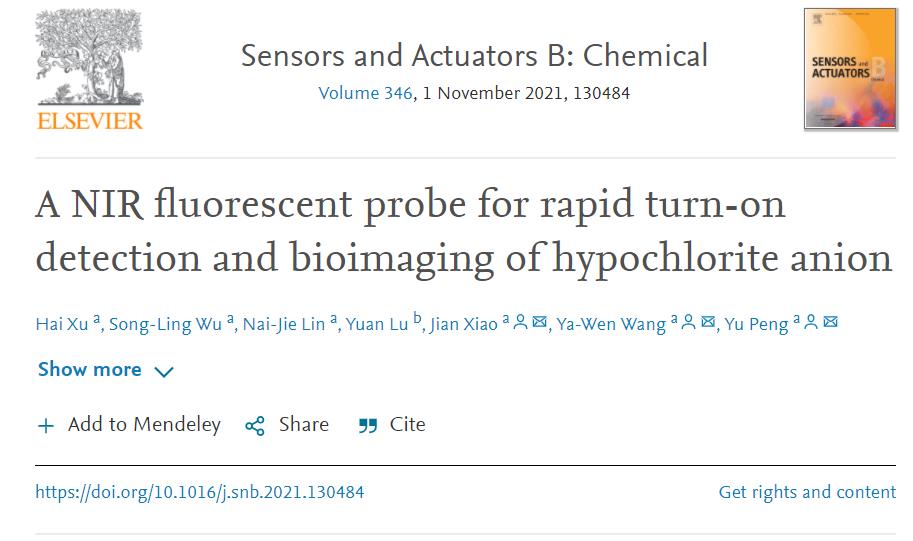 公司王雅雯教授课题组在《Sensors and Actuators: B. Chemical》和《Organic & Biomolecular Chemistry...
