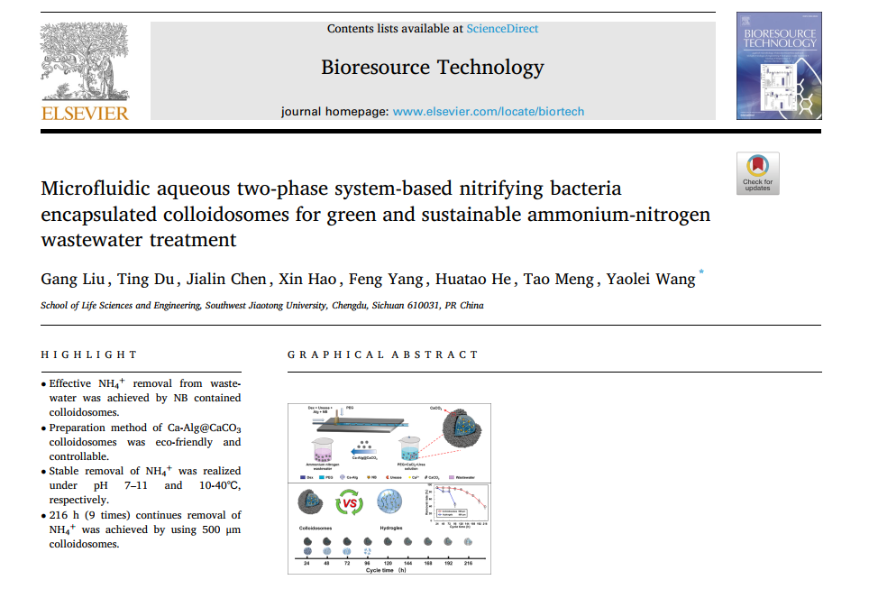 公司“微纳米生物技术”创新团队王垚磊老师在国际生物工程与环境领域顶级期刊Bioresource Technology发...