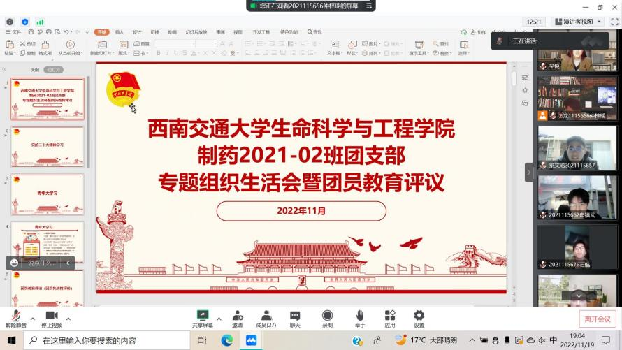 生物(中外)2022-01班“学习党的二十大精神”主题团课顺利开展