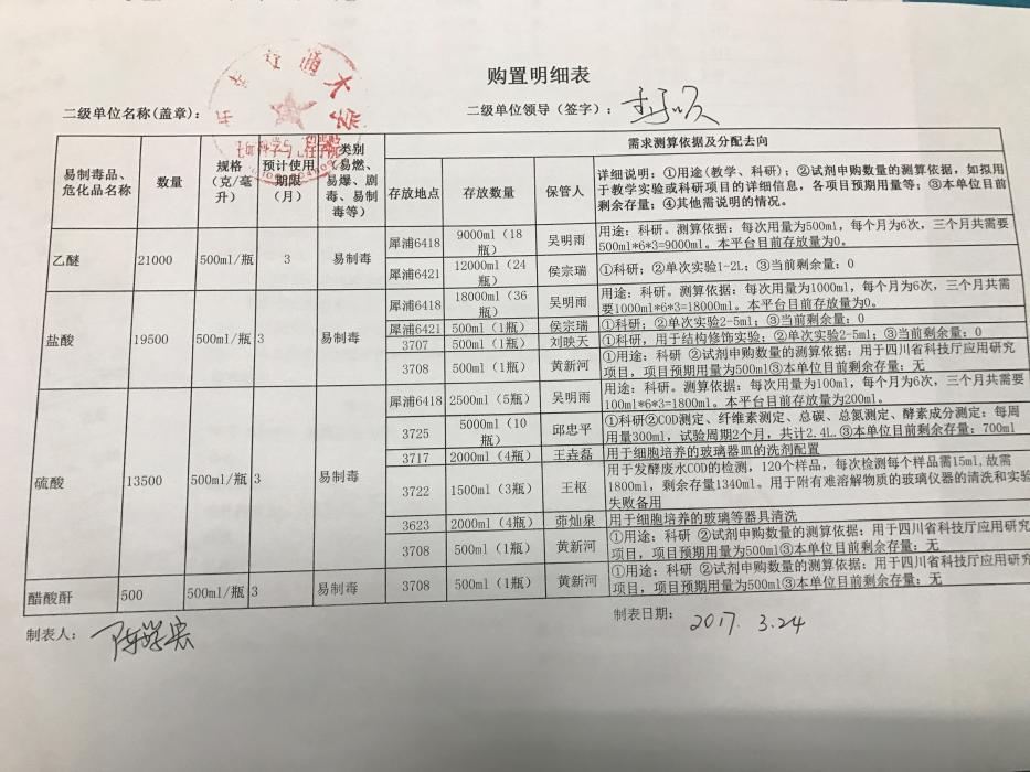 2017-04-06伟德官网第二季度易制毒试剂购买送货通知 根据各位老师上个月提交的购置申请,目前已经依次完成资实处审核、保卫处审核、公司备案...